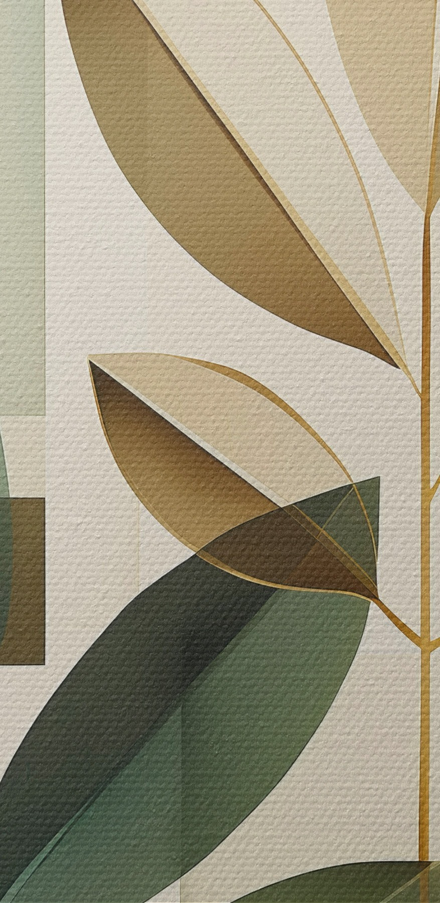 Кругла картина Геометричні абстракції з листям Nr r46581
