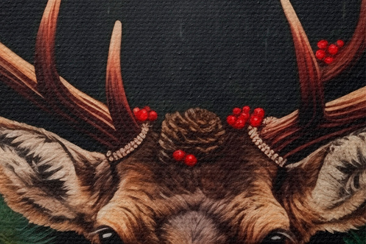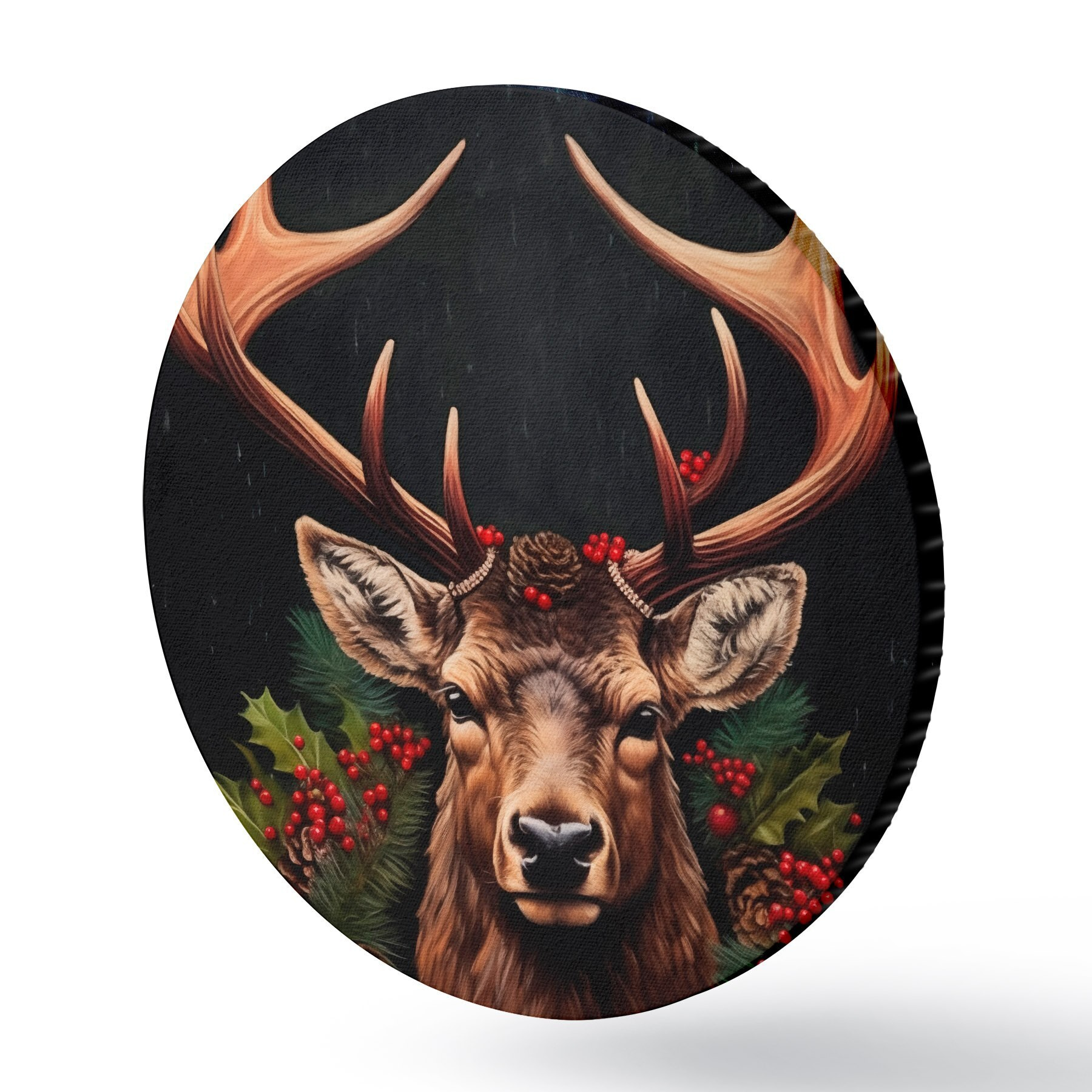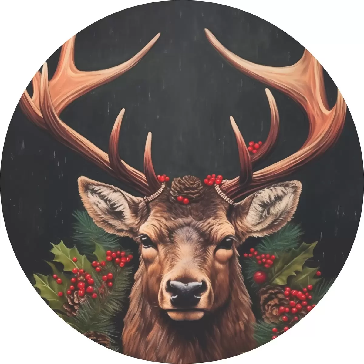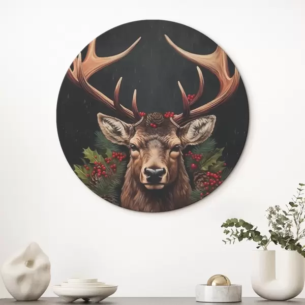 Кругла картина Портрет оленя з різдвяним вінком r46628
