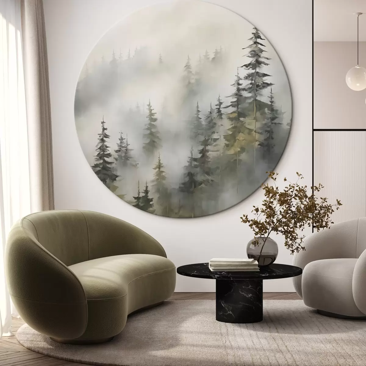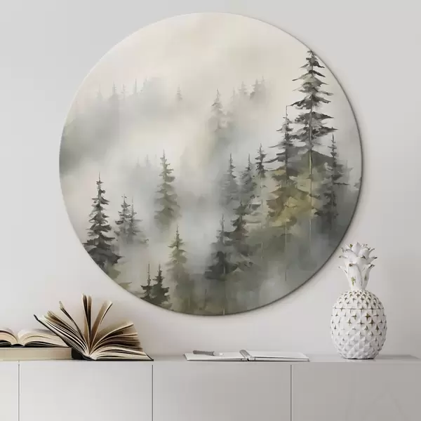 Кругла картина Ліс у тумані імітація живопису Nr r46671