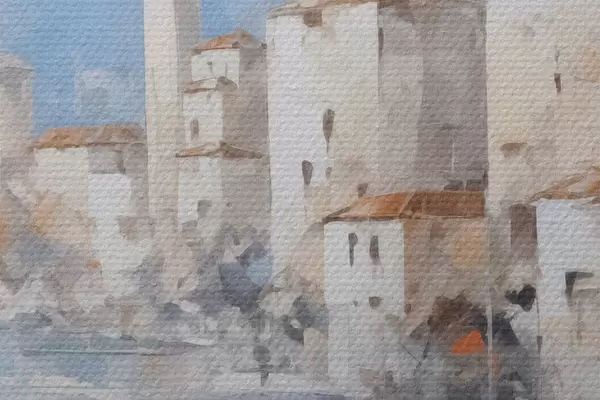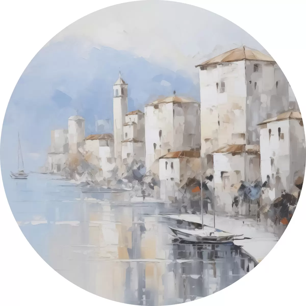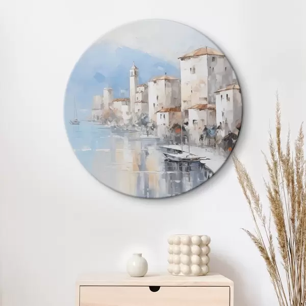 Кругла картина Абстрактні будинки біля затоки імітація живопису Nr r46673