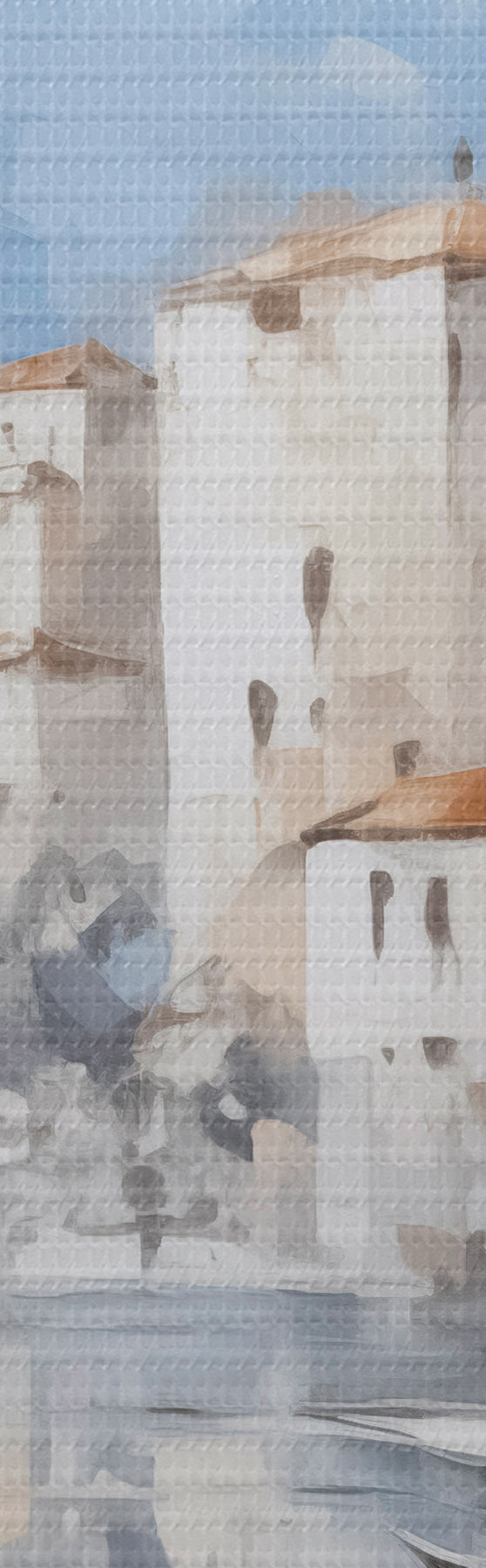 Кругла картина Абстрактні будинки біля затоки імітація живопису r46673