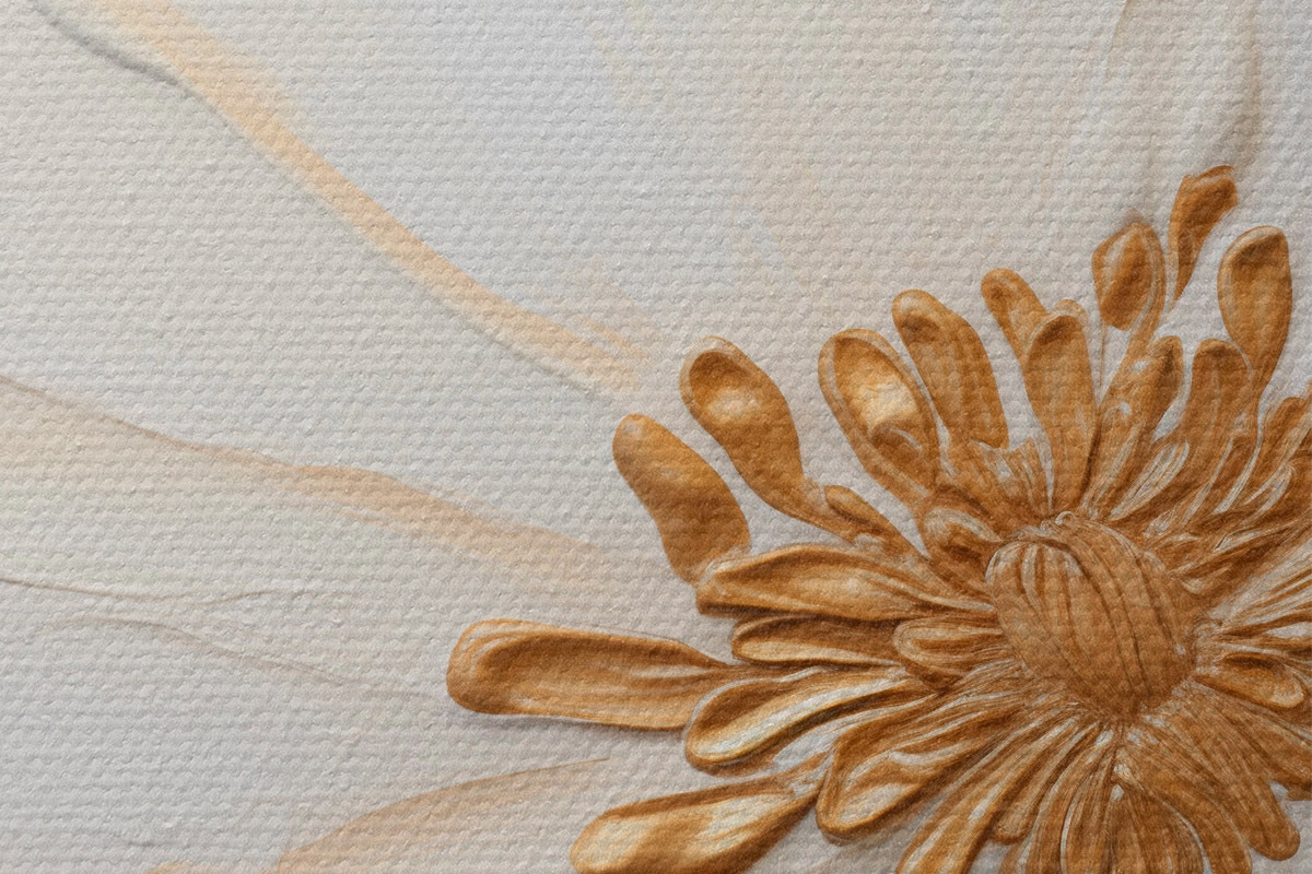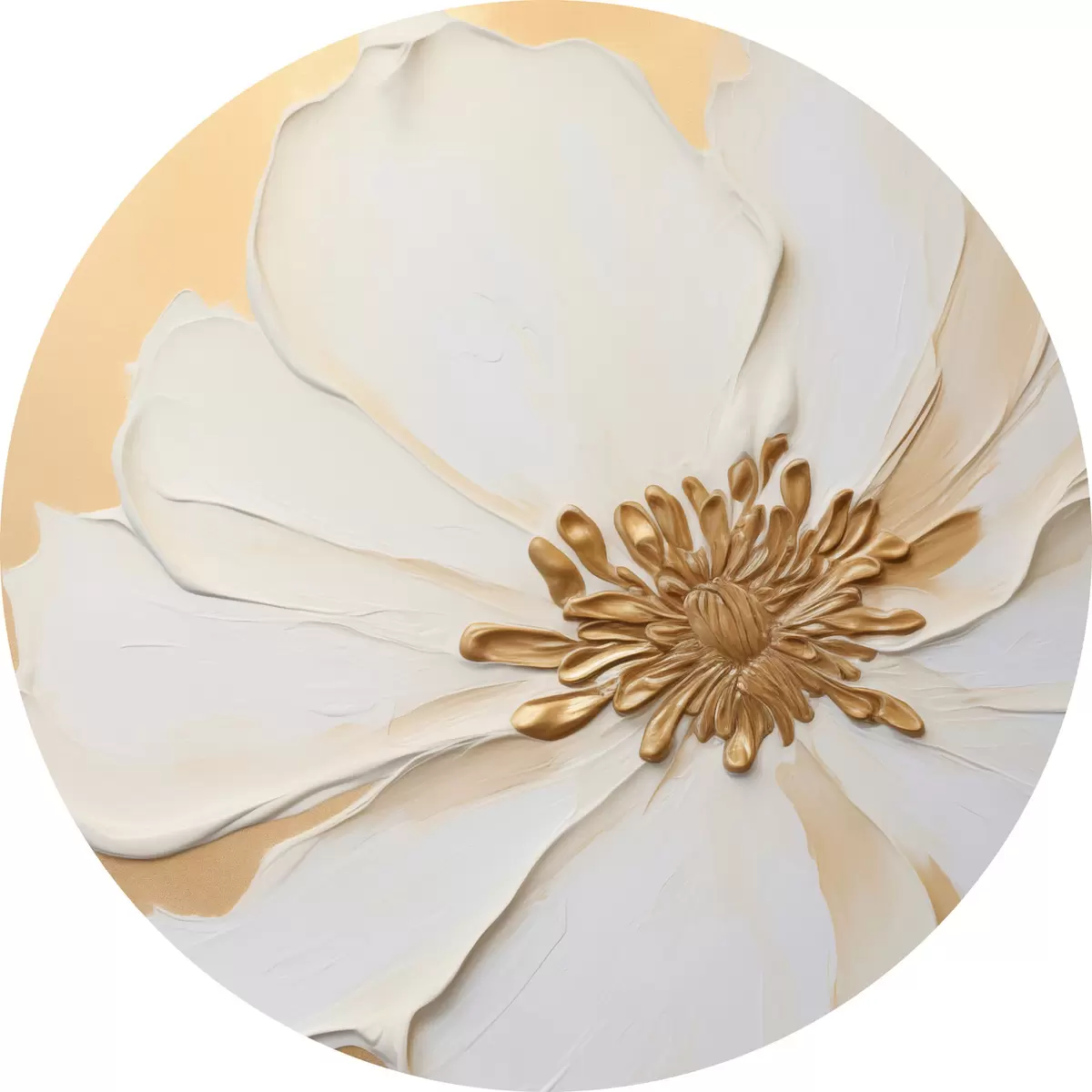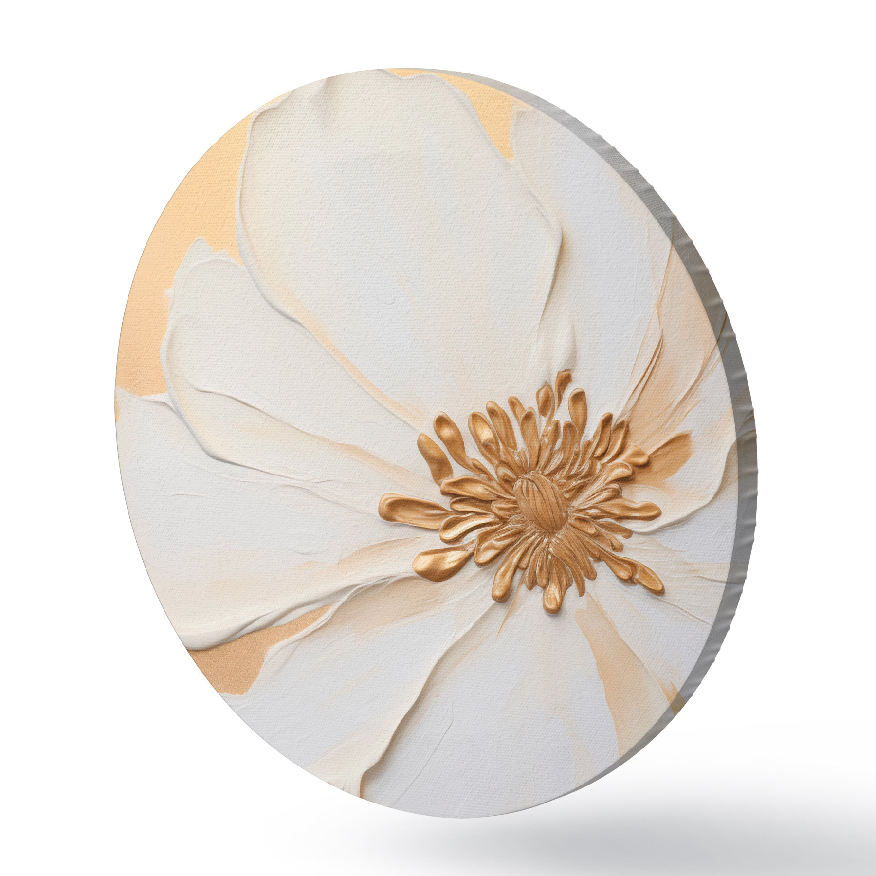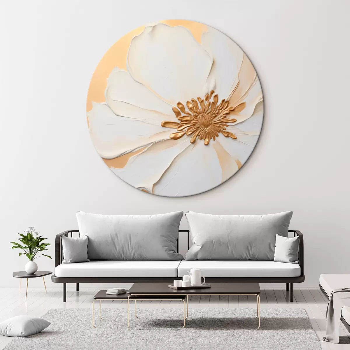 Кругла картина Біла квітка з ніжними пелюстками, імітованими густими мазками, на світло-помаранчевому текстурованому тлі Nr r46691