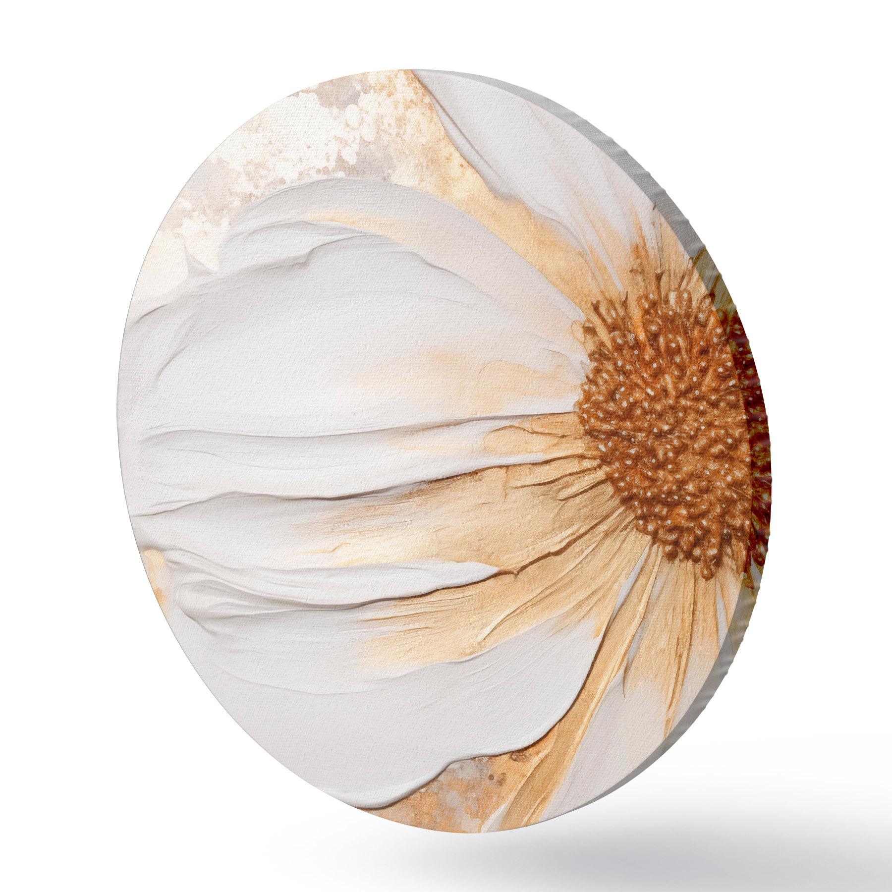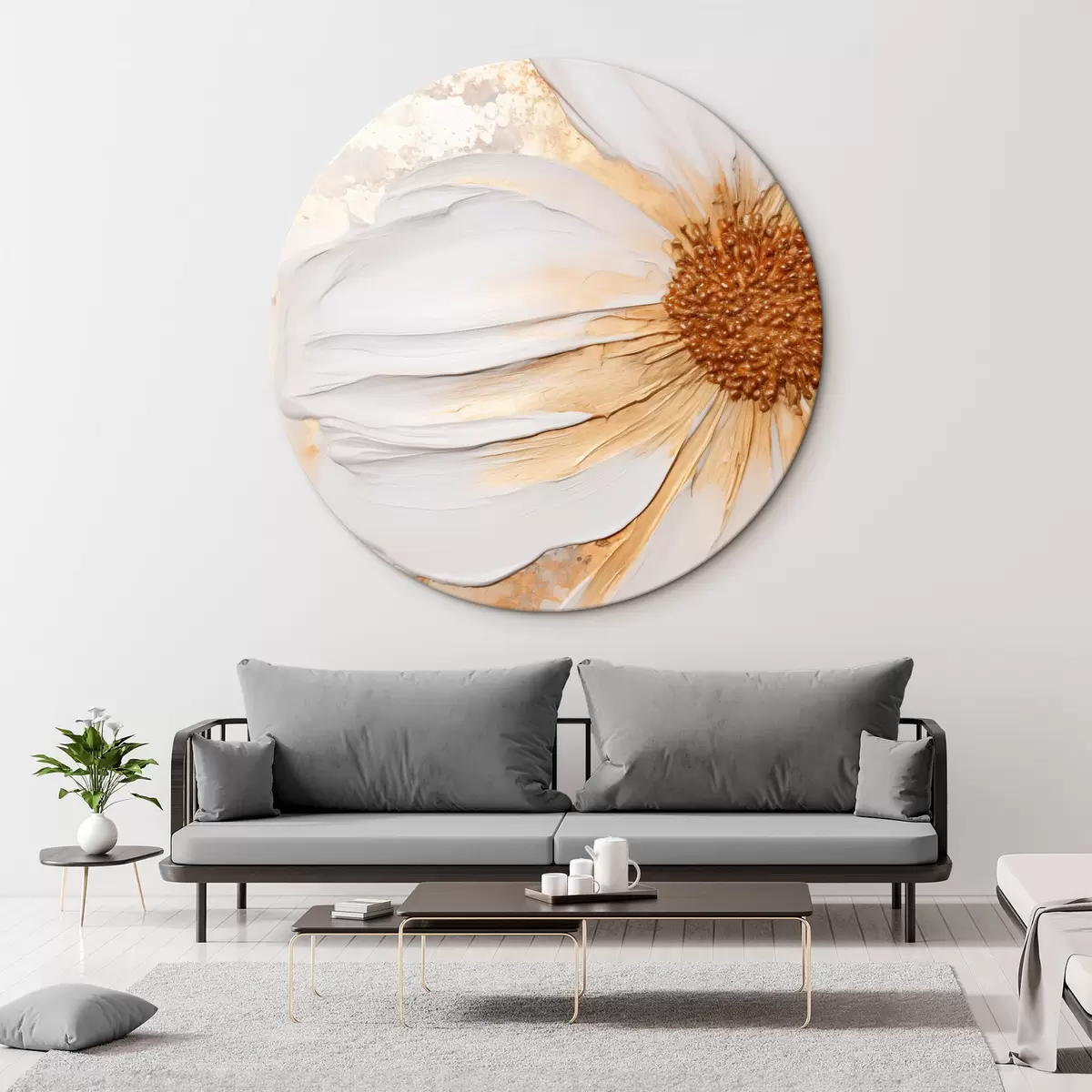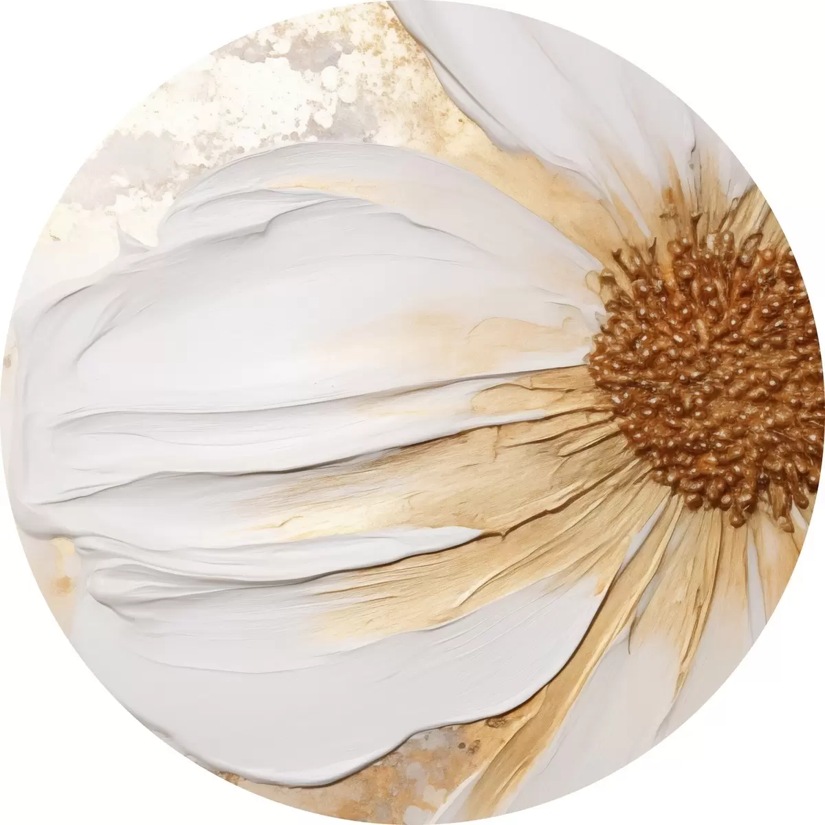 Кругла картина Біла квітка з ніжними пелюстками, фактурний абстрактний фон, елегантне декоративне мистецтво Nr r46692