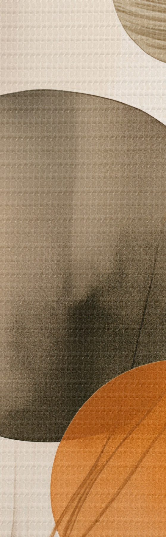Кругла картина Абстрактна імітація живопису з помаранчевими та сірими колами, листям і гілками, сучасний стиль, ефект акварелі Nr r46697