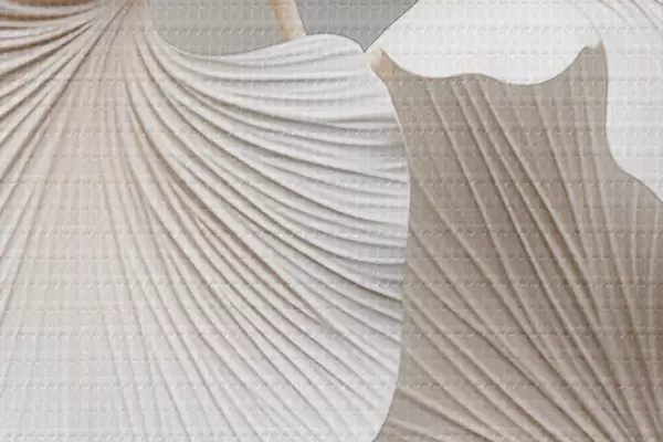Кругла картина Білі листя гінкго білоба з виразними прожилками, м'яке освітлення, текстурований елегантний і мінімалістичний дизайн r46705