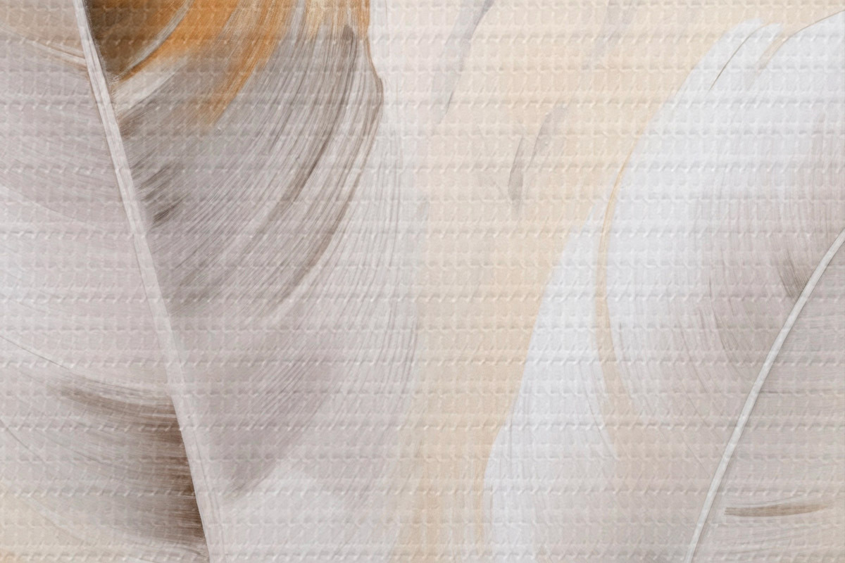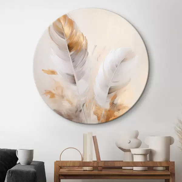 Кругла картина Абстрактні пір'я, оточені бежевими та коричневими пучками, м'які та ніжні, на світло-бежевому тлі Nr r46711