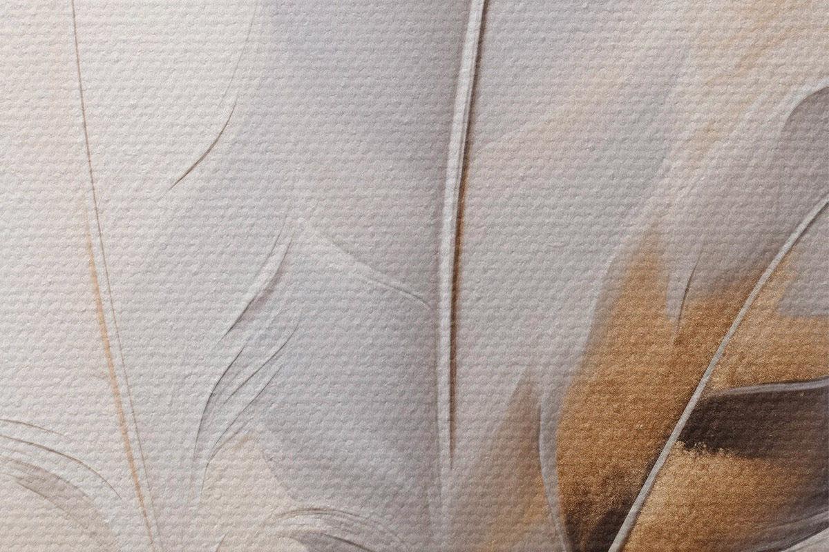 Кругла картина Абстрактні пір'я, оточені бежевими та коричневими пучками, м'які та ніжні, на світло-бежевому тлі Nr r46712