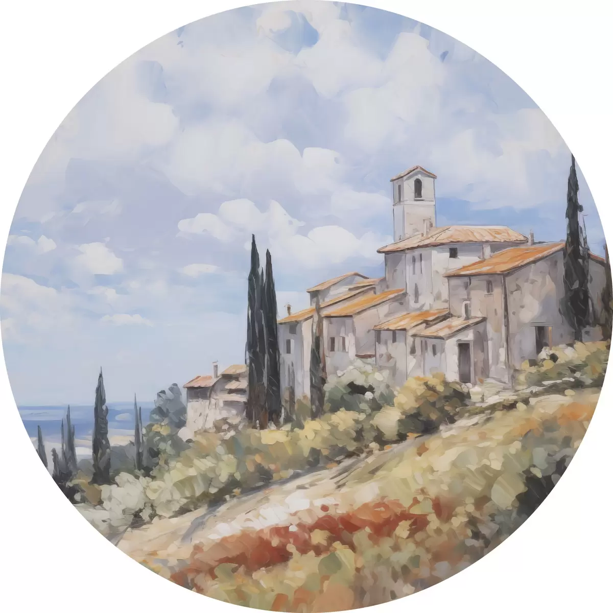Кругла картина Імітація сільського пейзажу в живописі Nr r46716