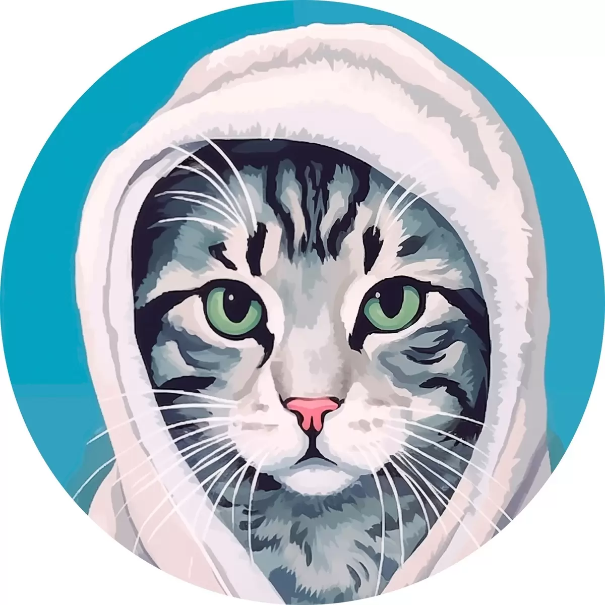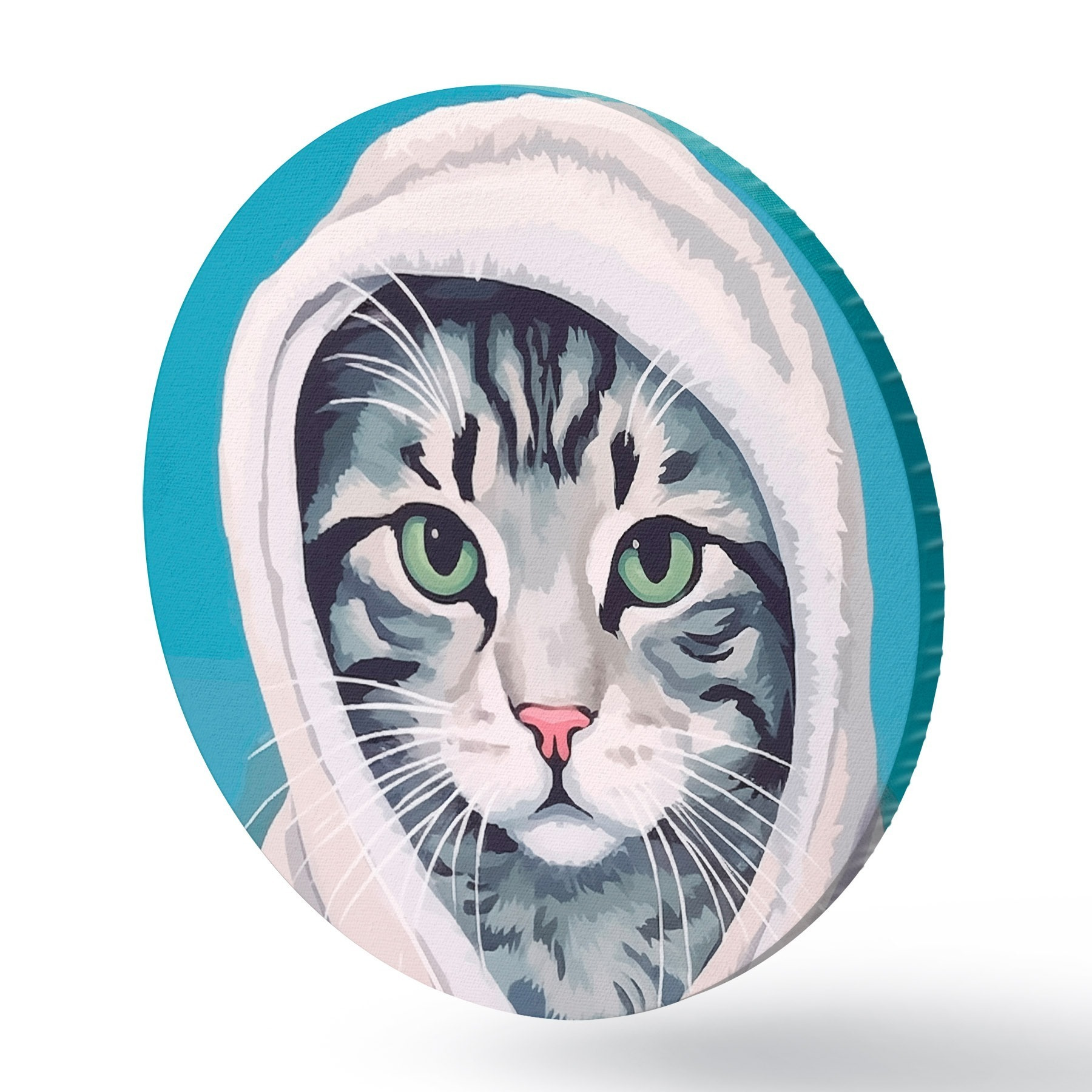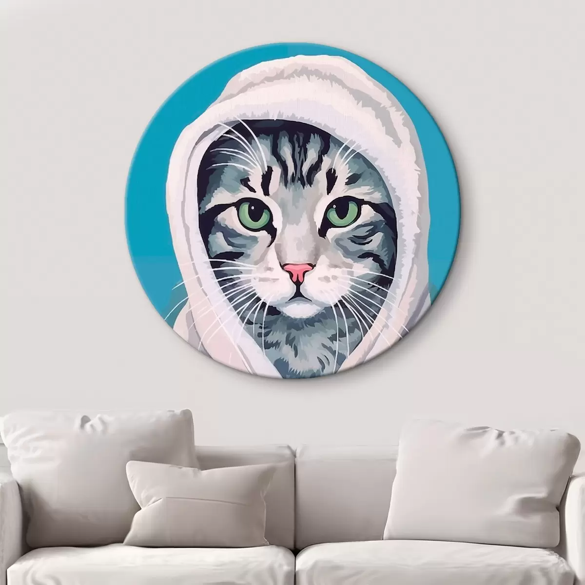 Кругла картина Смугаста кішка в білому рушнику Nr r46740