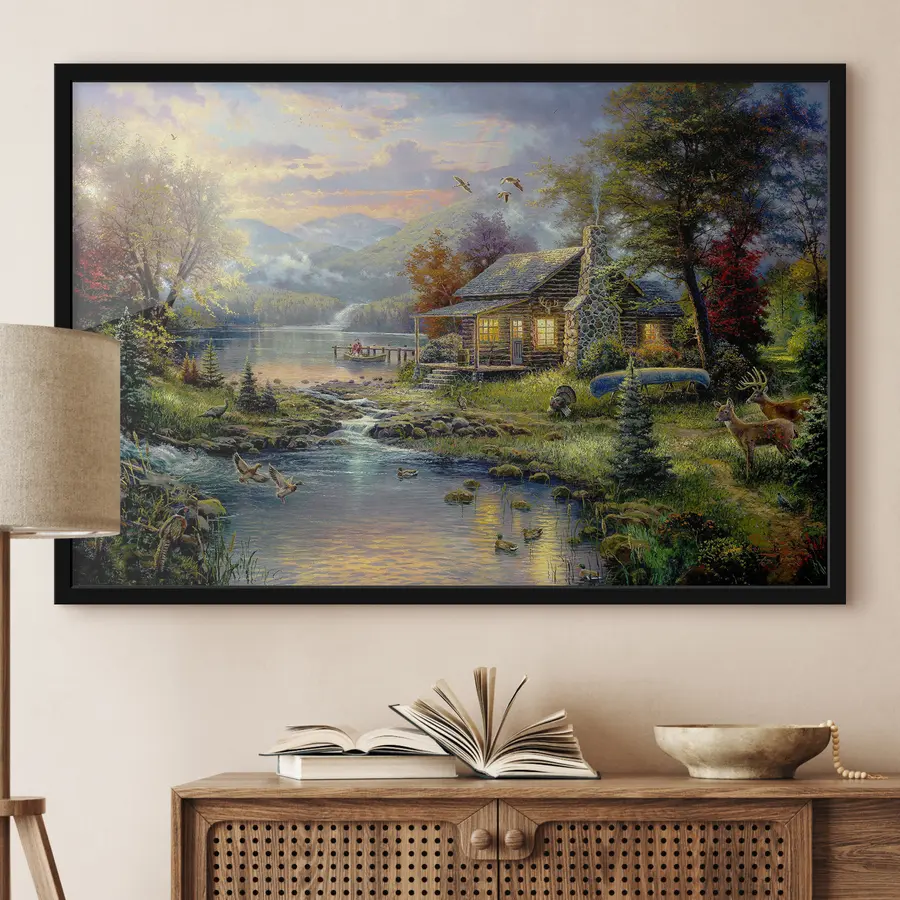 М'який ландшафт з озером в теплих бежево-сірих тонах