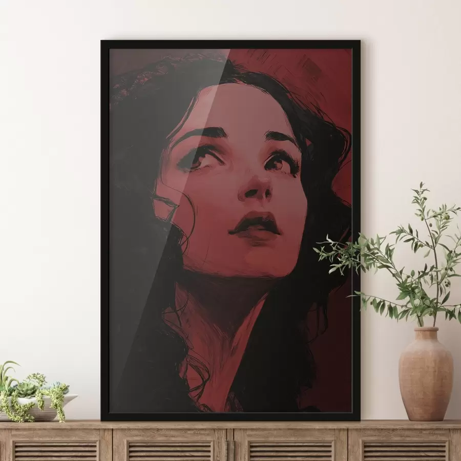 Абстрактний портрет жінки з глибокими темними і теплими тонами,