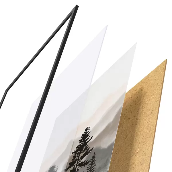 Постер складається з рами, оргскла, надрукованого зображення та підкладки з ДСП. Завдяки кріпленням на звороті плакат можна одразу ж повісити на стіну.