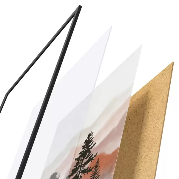 Постер складається з рами, оргскла, надрукованого зображення та підкладки з ДСП. Завдяки кріпленням на звороті плакат можна одразу ж повісити на стіну.