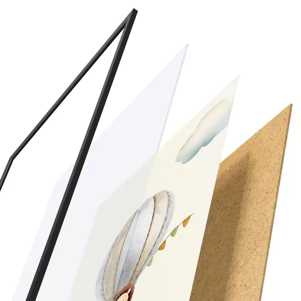 Постер складається з рами, оргскла, надрукованого зображення та підкладки з ДСП. Завдяки кріпленням на звороті плакат можна одразу ж повісити на стіну.