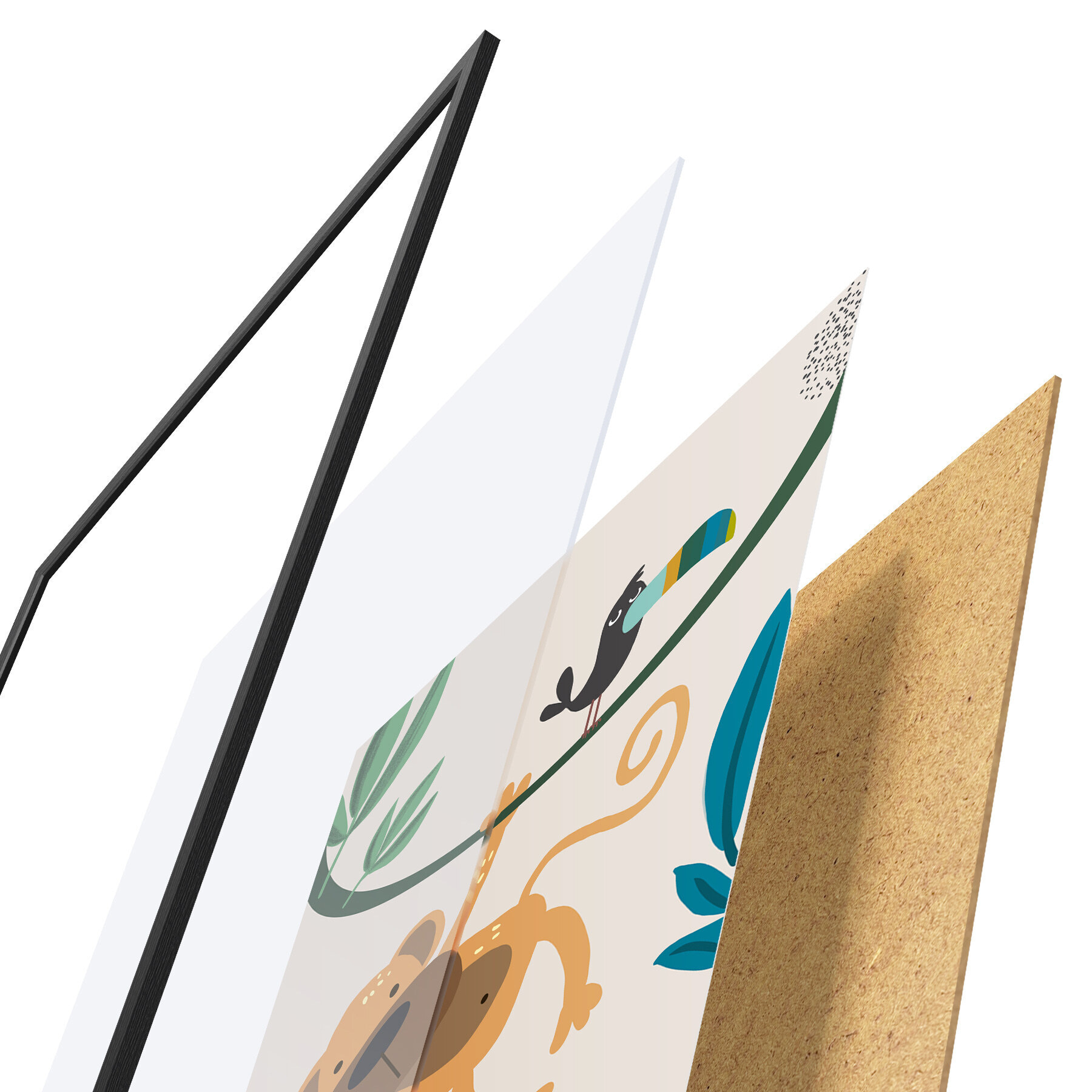 Постер складається з рами, оргскла, надрукованого зображення та підкладки з ДСП. Завдяки кріпленням на звороті плакат можна одразу ж повісити на стіну.