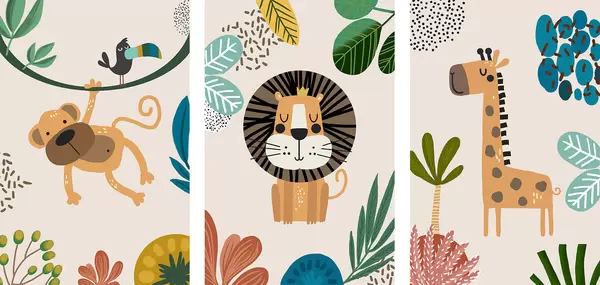 Постер на стіну Тварини в джунглях в стилі сафарі, бохо: мавпа, лев, жираф Nr d00332