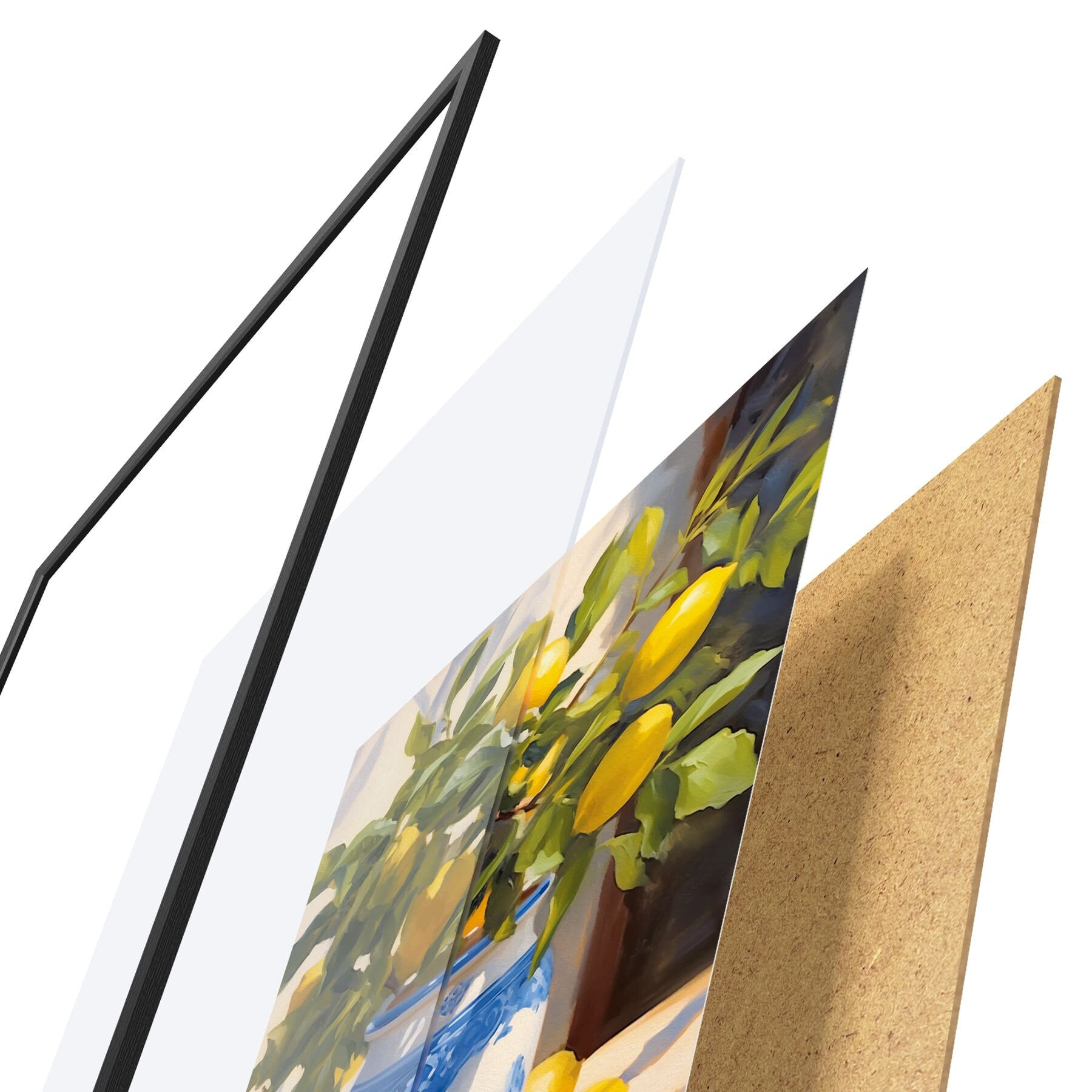 Постер складається з рами, оргскла, надрукованого зображення та підкладки з ДСП. Завдяки кріпленням на звороті плакат можна одразу ж повісити на стіну.