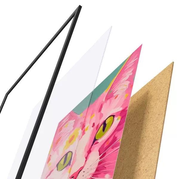 Постер складається з рами, оргскла, надрукованого зображення та підкладки з ДСП. Завдяки кріпленням на звороті плакат можна одразу ж повісити на стіну.