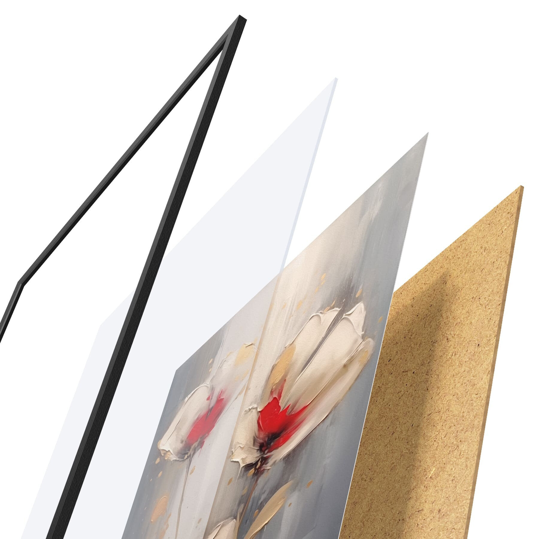 Постер складається з рами, оргскла, надрукованого зображення та підкладки з ДСП. Завдяки кріпленням на звороті плакат можна одразу ж повісити на стіну.