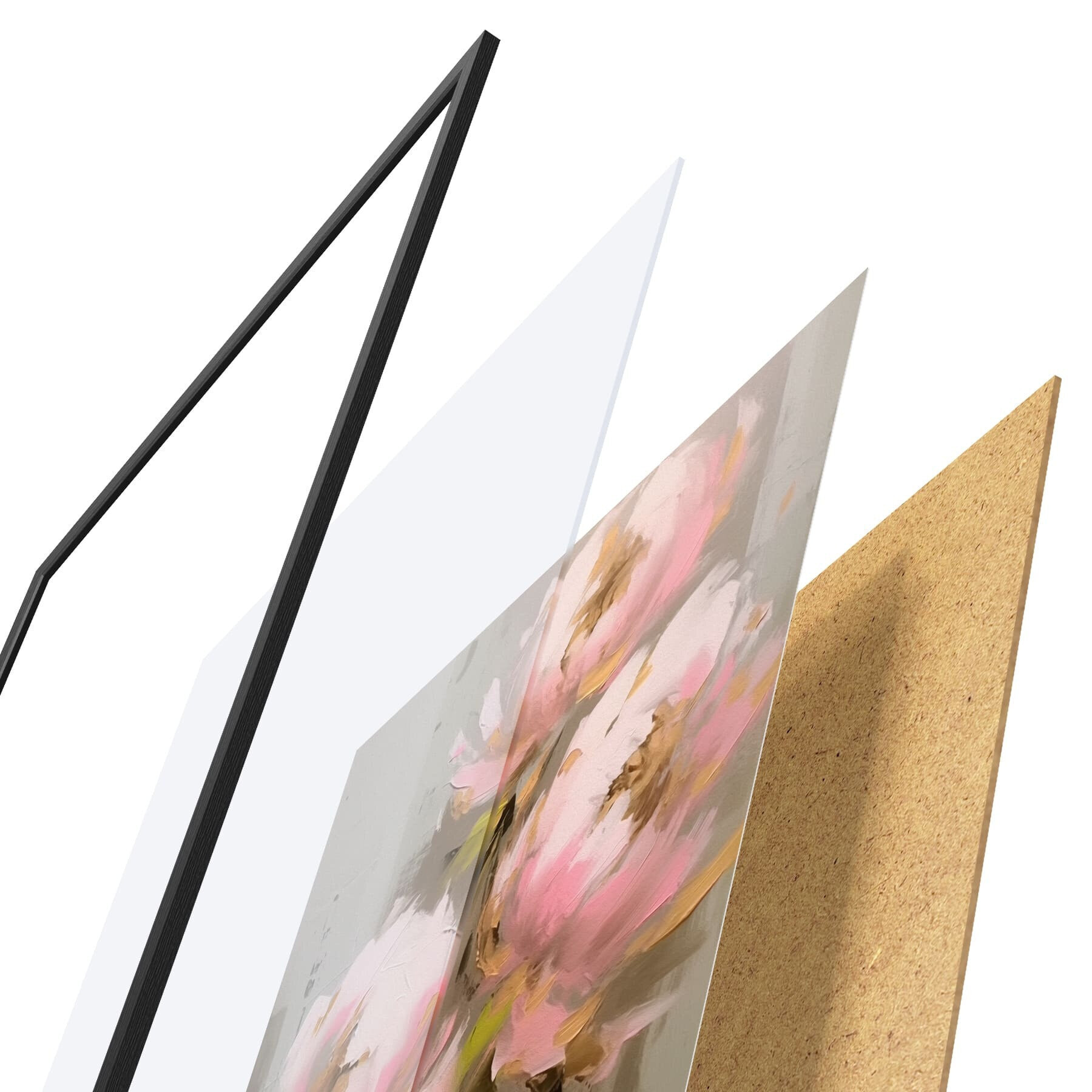 Постер складається з рами, оргскла, надрукованого зображення та підкладки з ДСП. Завдяки кріпленням на звороті плакат можна одразу ж повісити на стіну.
