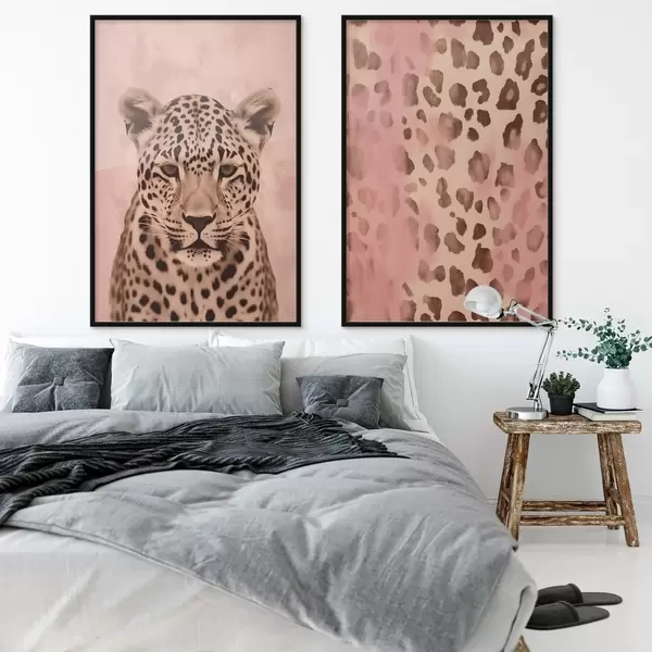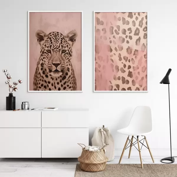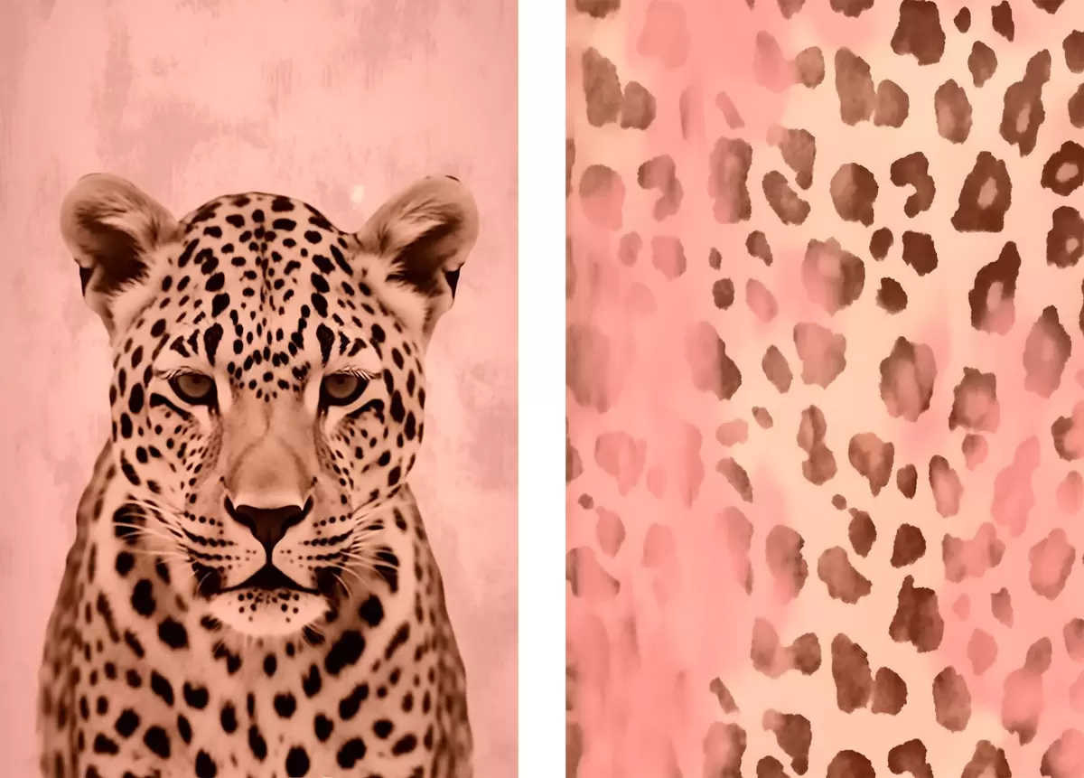 Постер на стіну Портрет гепарда, Абстрактний візерунок з леопардовим принтом на рожевому тлі Nr d00402