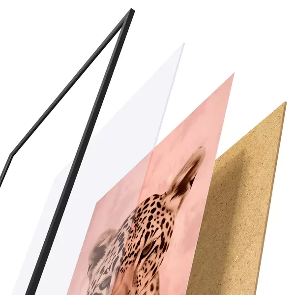 Постер складається з рами, оргскла, надрукованого зображення та підкладки з ДСП. Завдяки кріпленням на звороті плакат можна одразу ж повісити на стіну.