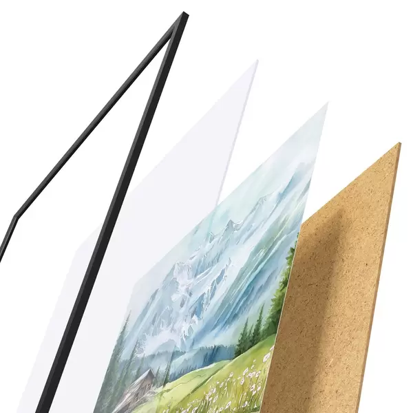 Постер складається з рами, оргскла, надрукованого зображення та підкладки з ДСП. Завдяки кріпленням на звороті плакат можна одразу ж повісити на стіну.