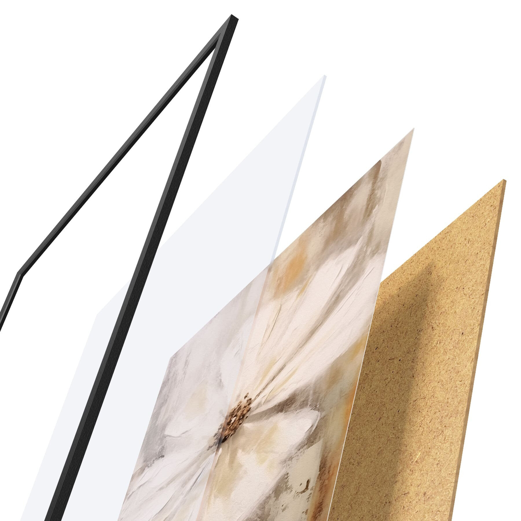 Постер складається з рами, оргскла, надрукованого зображення та підкладки з ДСП. Завдяки кріпленням на звороті плакат можна одразу ж повісити на стіну.
