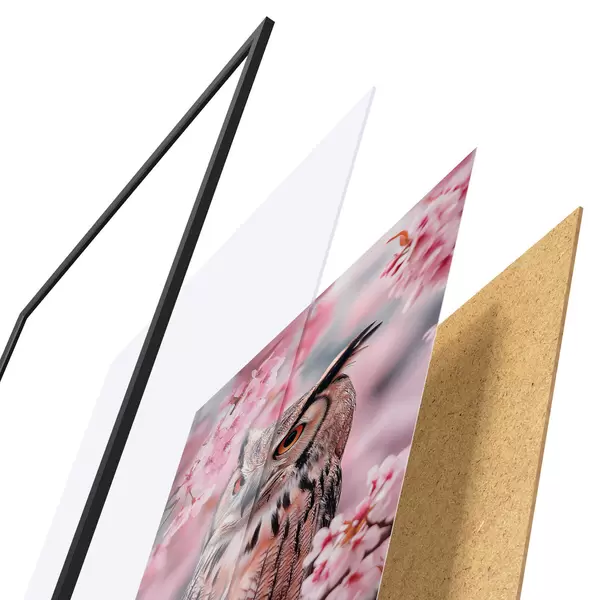 Постер складається з рами, оргскла, надрукованого зображення та підкладки з ДСП. Завдяки кріпленням на звороті плакат можна одразу ж повісити на стіну.