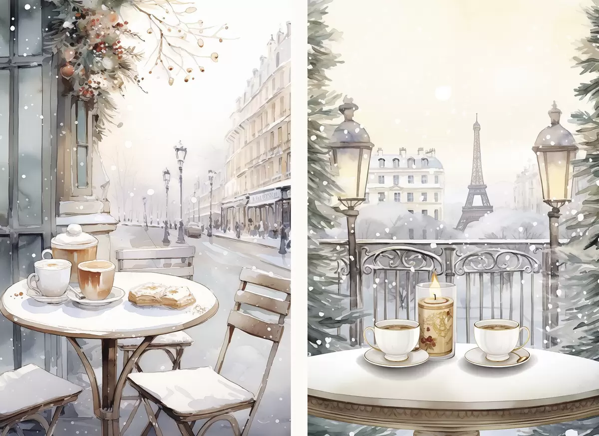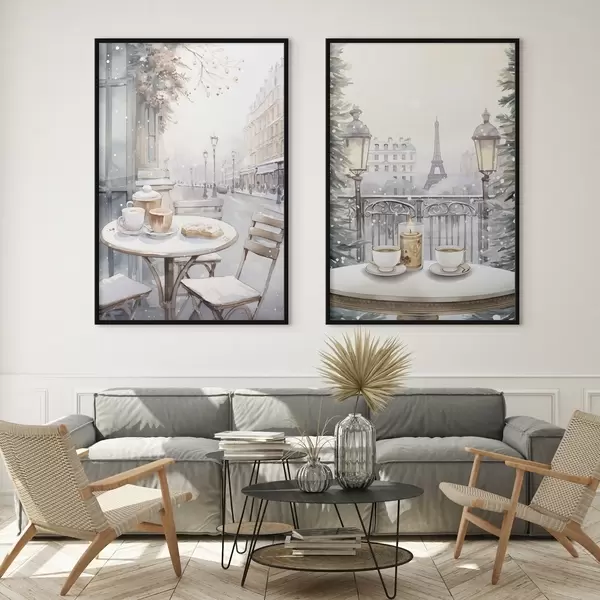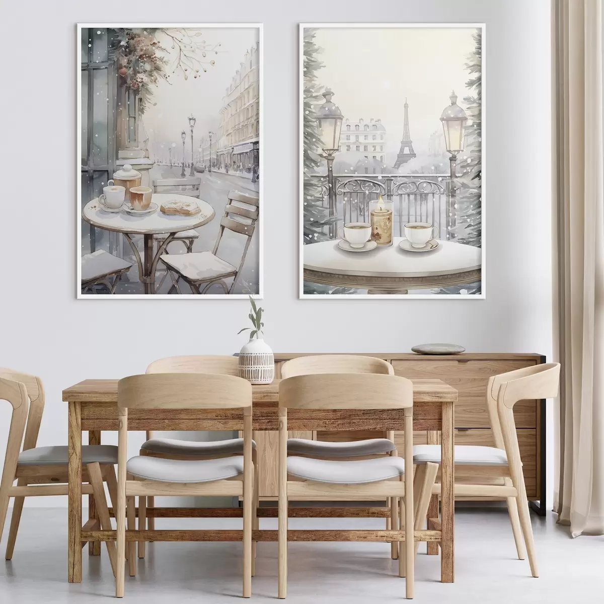 Постер на стіну Естетичні кав'ярні з філіжанкою кави, вулиця Парижа, зима, архітектура Nr d00413