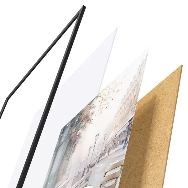 Постер складається з рами, оргскла, надрукованого зображення та підкладки з ДСП. Завдяки кріпленням на звороті плакат можна одразу ж повісити на стіну.