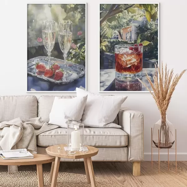 Постер на стіну Смачні коктейлі з ягодами, акварельний стиль, естетика, літня природа Nr d00415