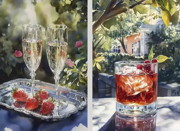 Постер на стіну Смачні коктейлі з ягодами, акварельний стиль, естетика, літня природа Nr d00415