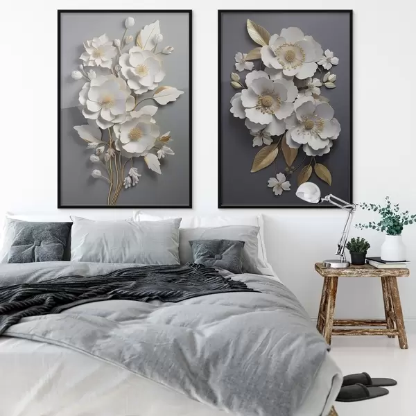 Постер на стіну Композиція з квіткових гілок на темному тлі Nr d00423