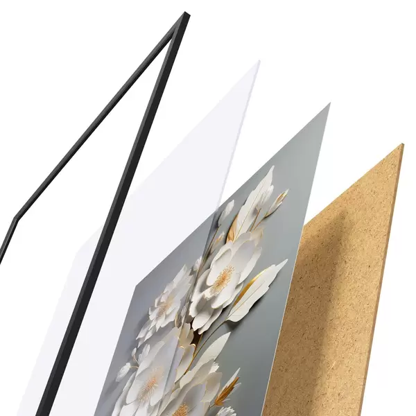 Постер складається з рами, оргскла, надрукованого зображення та підкладки з ДСП. Завдяки кріпленням на звороті плакат можна одразу ж повісити на стіну.