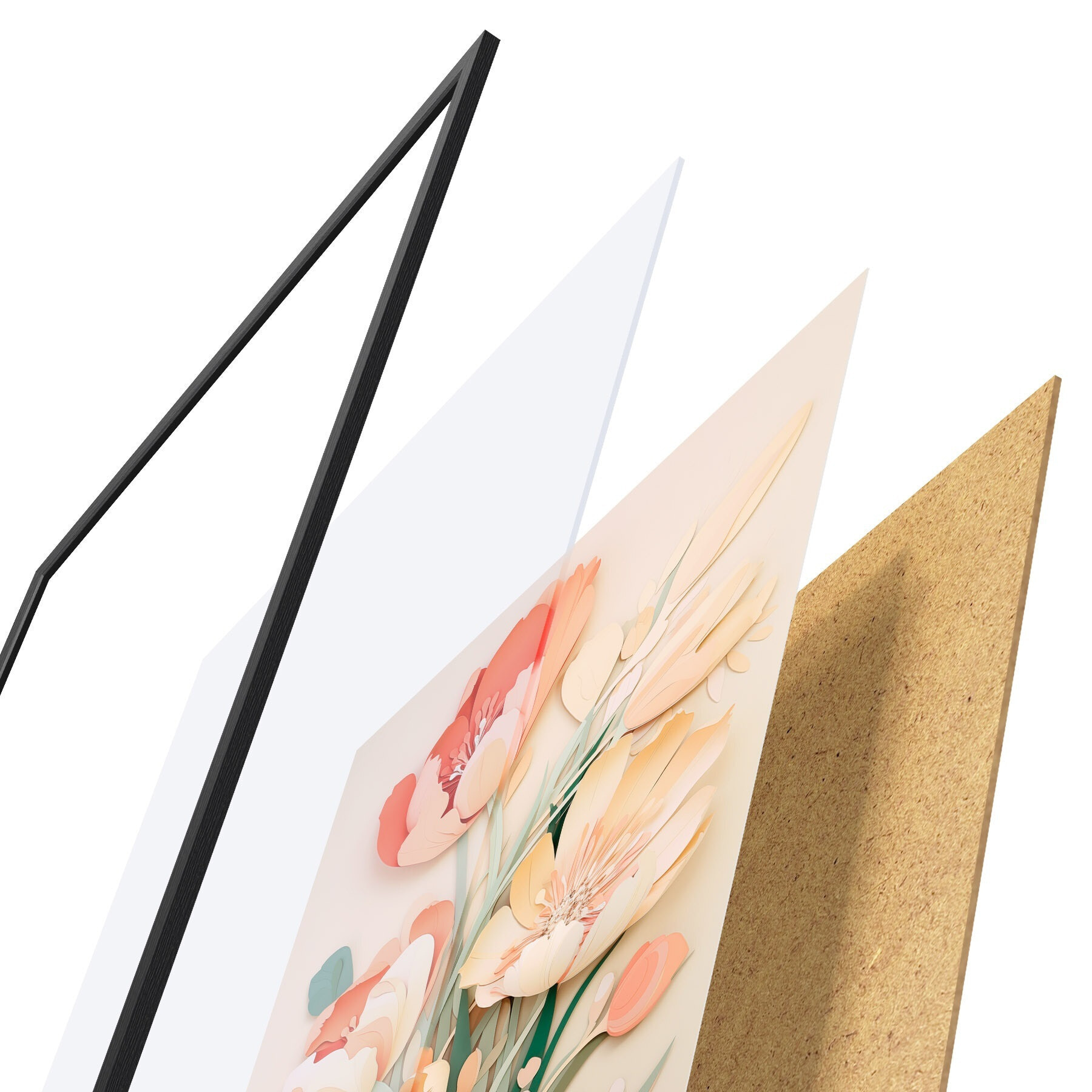 Постер складається з рами, оргскла, надрукованого зображення та підкладки з ДСП. Завдяки кріпленням на звороті плакат можна одразу ж повісити на стіну.