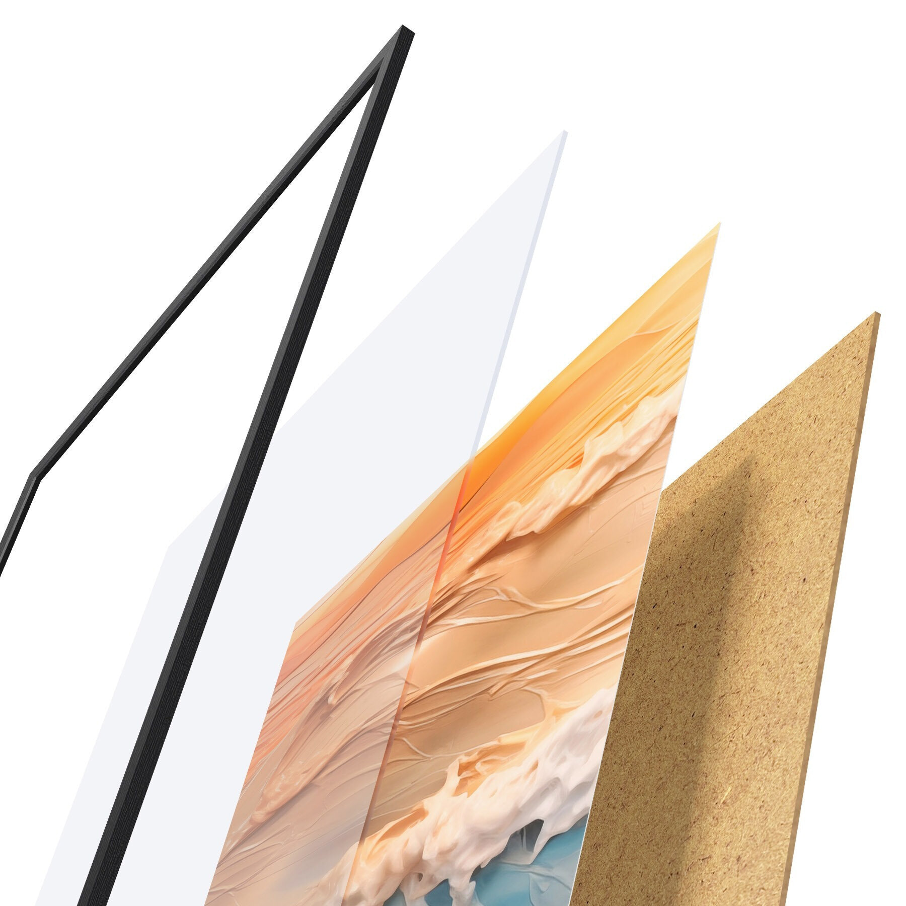 Постер складається з рами, оргскла, надрукованого зображення та підкладки з ДСП. Завдяки кріпленням на звороті плакат можна одразу ж повісити на стіну.