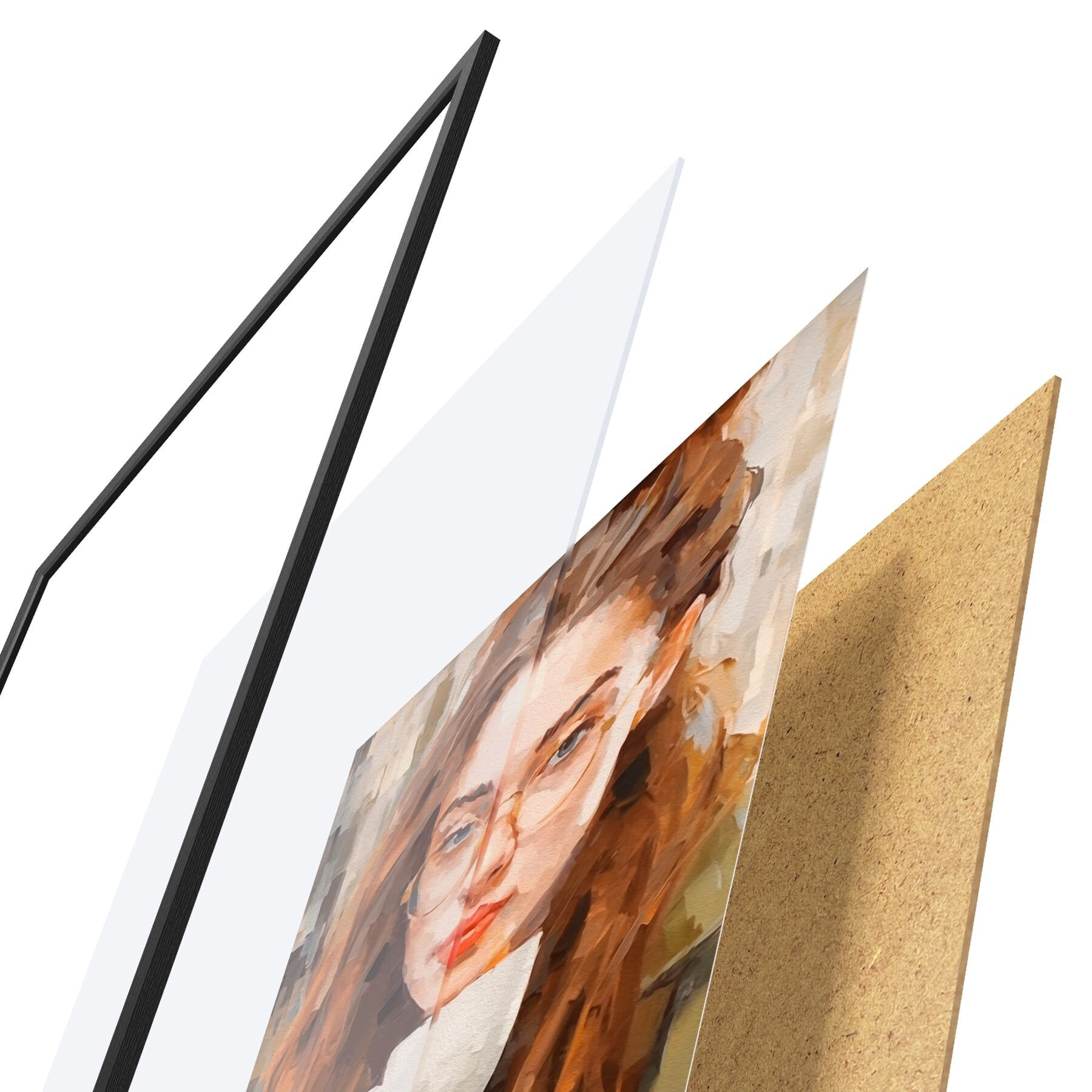 Постер складається з рами, оргскла, надрукованого зображення та підкладки з ДСП. Завдяки кріпленням на звороті плакат можна одразу ж повісити на стіну.