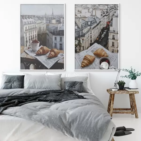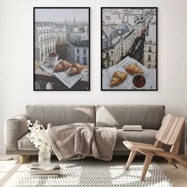 Постер на стіну Вид на місто з балкона в Парижі, Ейфелева вежа, полуниця, кава, журнал Nr d00445