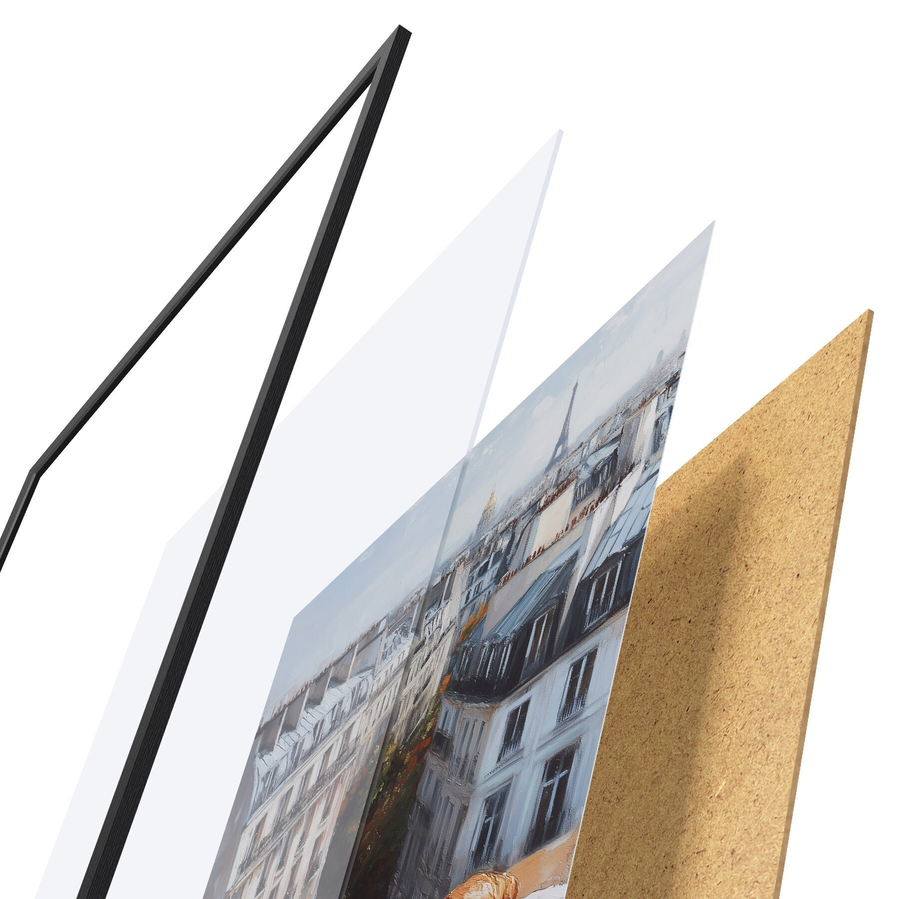 Постер складається з рами, оргскла, надрукованого зображення та підкладки з ДСП. Завдяки кріпленням на звороті плакат можна одразу ж повісити на стіну.