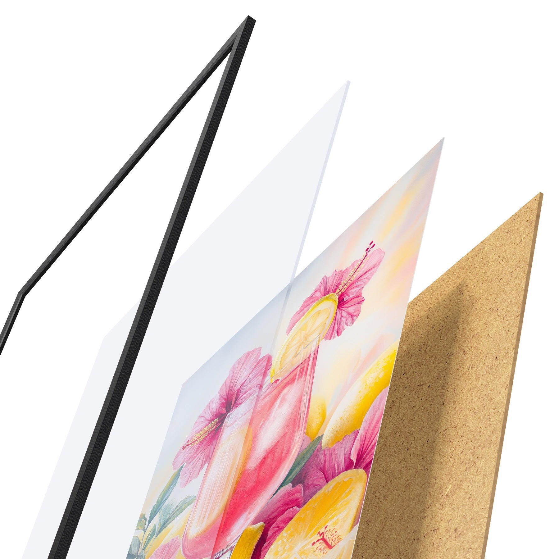 Постер складається з рами, оргскла, надрукованого зображення та підкладки з ДСП. Завдяки кріпленням на звороті плакат можна одразу ж повісити на стіну.
