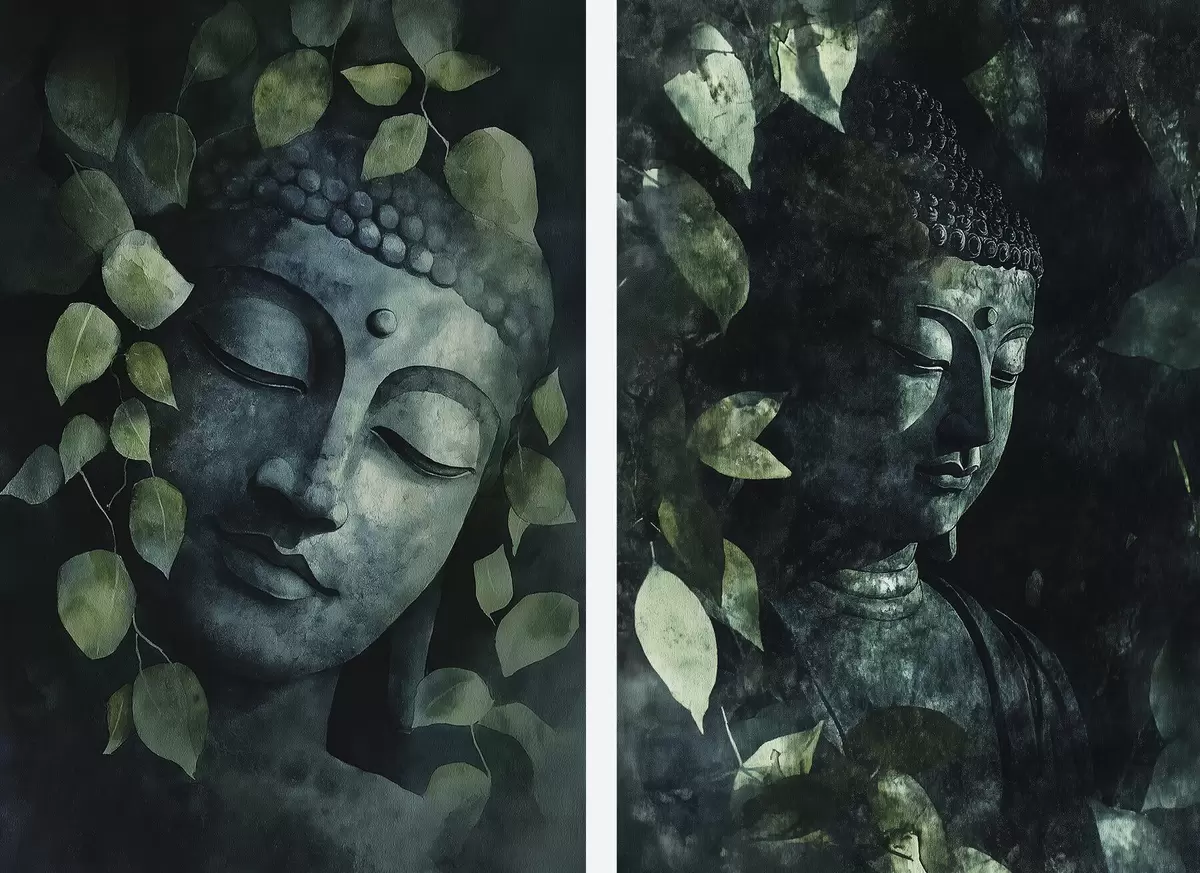 Постер на стіну Зелений Будда в тропічному листі, акварельний стиль Nr d00451