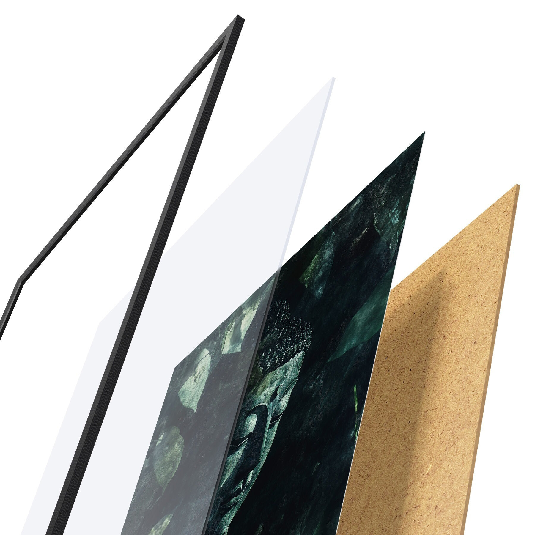 Постер складається з рами, оргскла, надрукованого зображення та підкладки з ДСП. Завдяки кріпленням на звороті плакат можна одразу ж повісити на стіну.