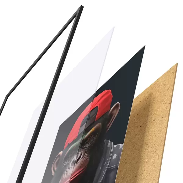 Постер складається з рами, оргскла, надрукованого зображення та підкладки з ДСП. Завдяки кріпленням на звороті плакат можна одразу ж повісити на стіну.