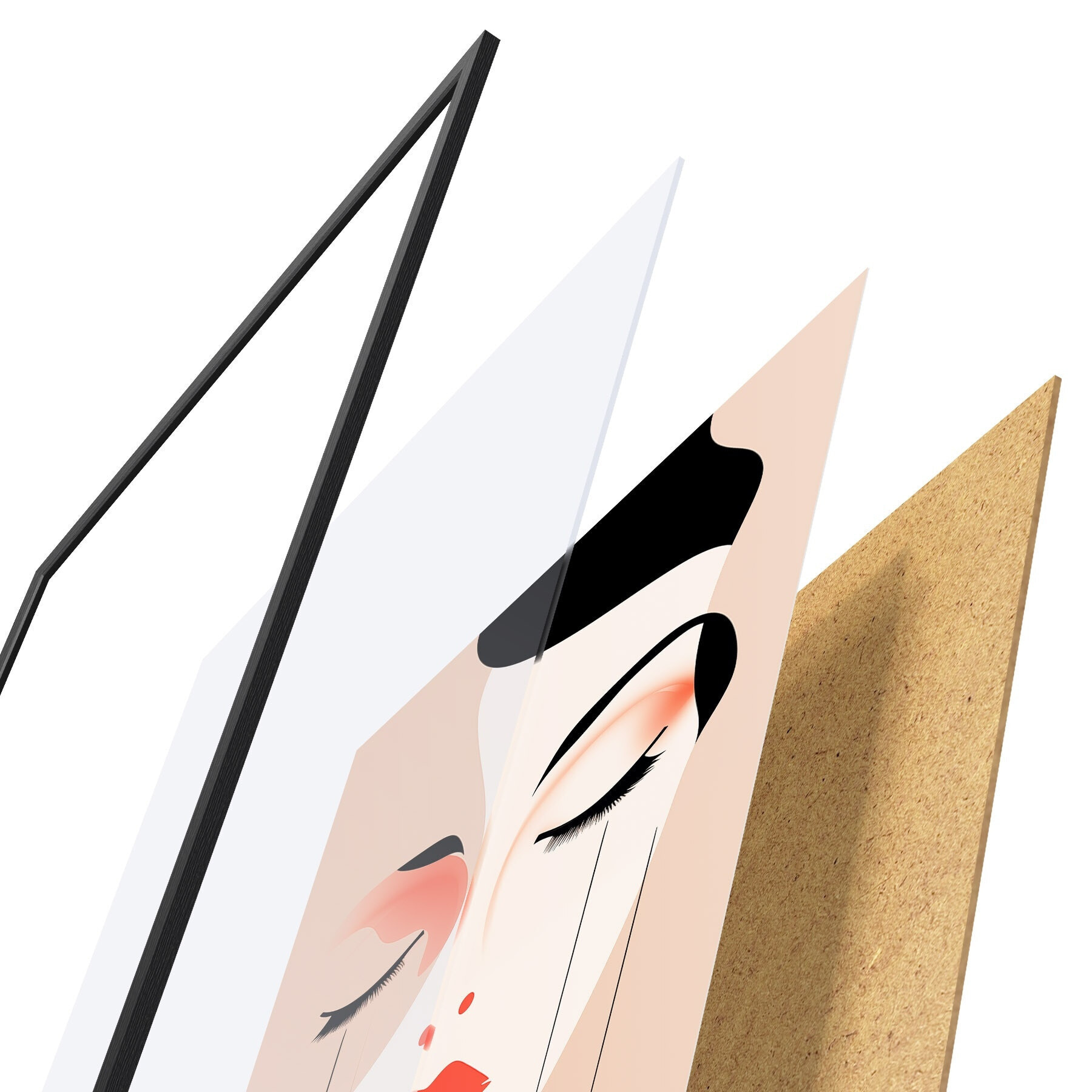 Постер складається з рами, оргскла, надрукованого зображення та підкладки з ДСП. Завдяки кріпленням на звороті плакат можна одразу ж повісити на стіну.