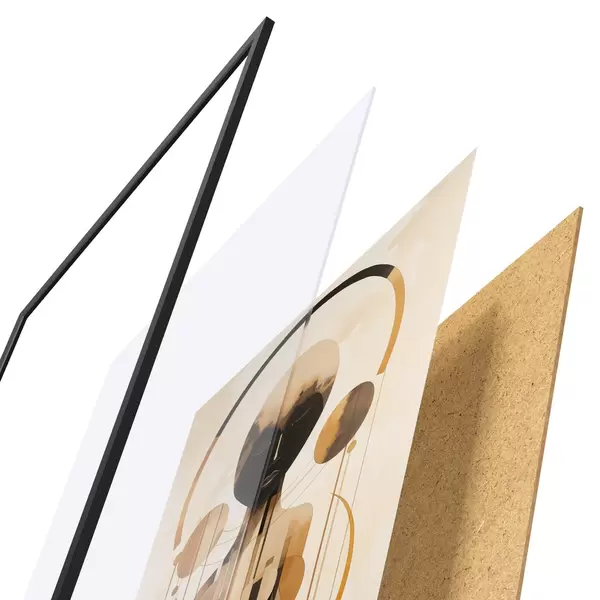 Постер складається з рами, оргскла, надрукованого зображення та підкладки з ДСП. Завдяки кріпленням на звороті плакат можна одразу ж повісити на стіну.