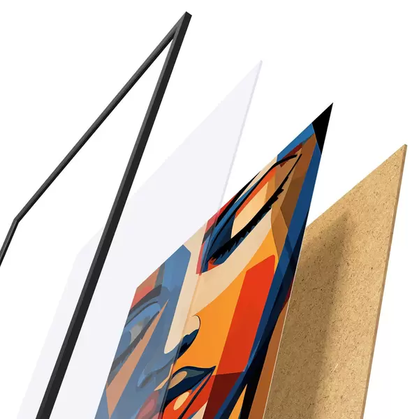 Постер складається з рами, оргскла, надрукованого зображення та підкладки з ДСП. Завдяки кріпленням на звороті плакат можна одразу ж повісити на стіну.