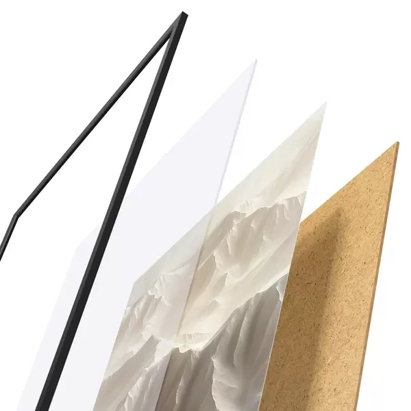 Постер складається з рами, оргскла, надрукованого зображення та підкладки з ДСП. Завдяки кріпленням на звороті плакат можна одразу ж повісити на стіну.