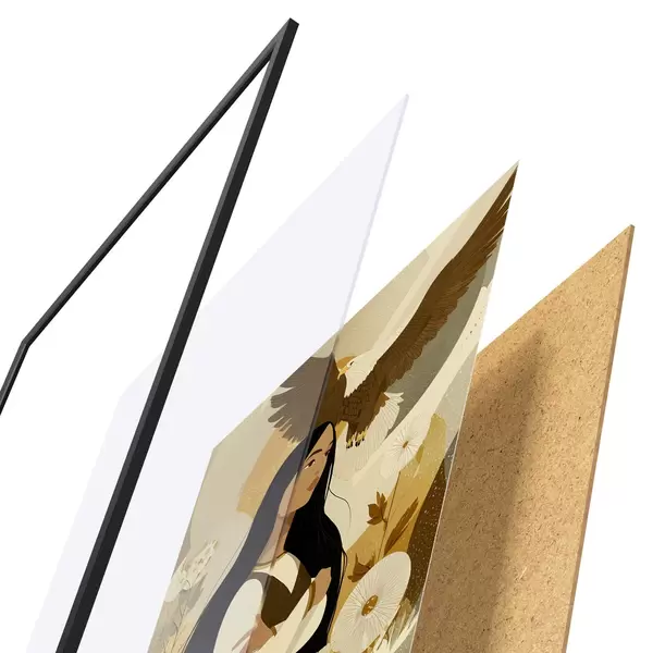 Постер складається з рами, оргскла, надрукованого зображення та підкладки з ДСП. Завдяки кріпленням на звороті плакат можна одразу ж повісити на стіну.