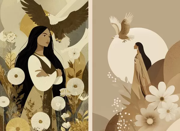 Постер на стіну Жінки з орлами, племінний стиль, бежеві кольори Nr d00477